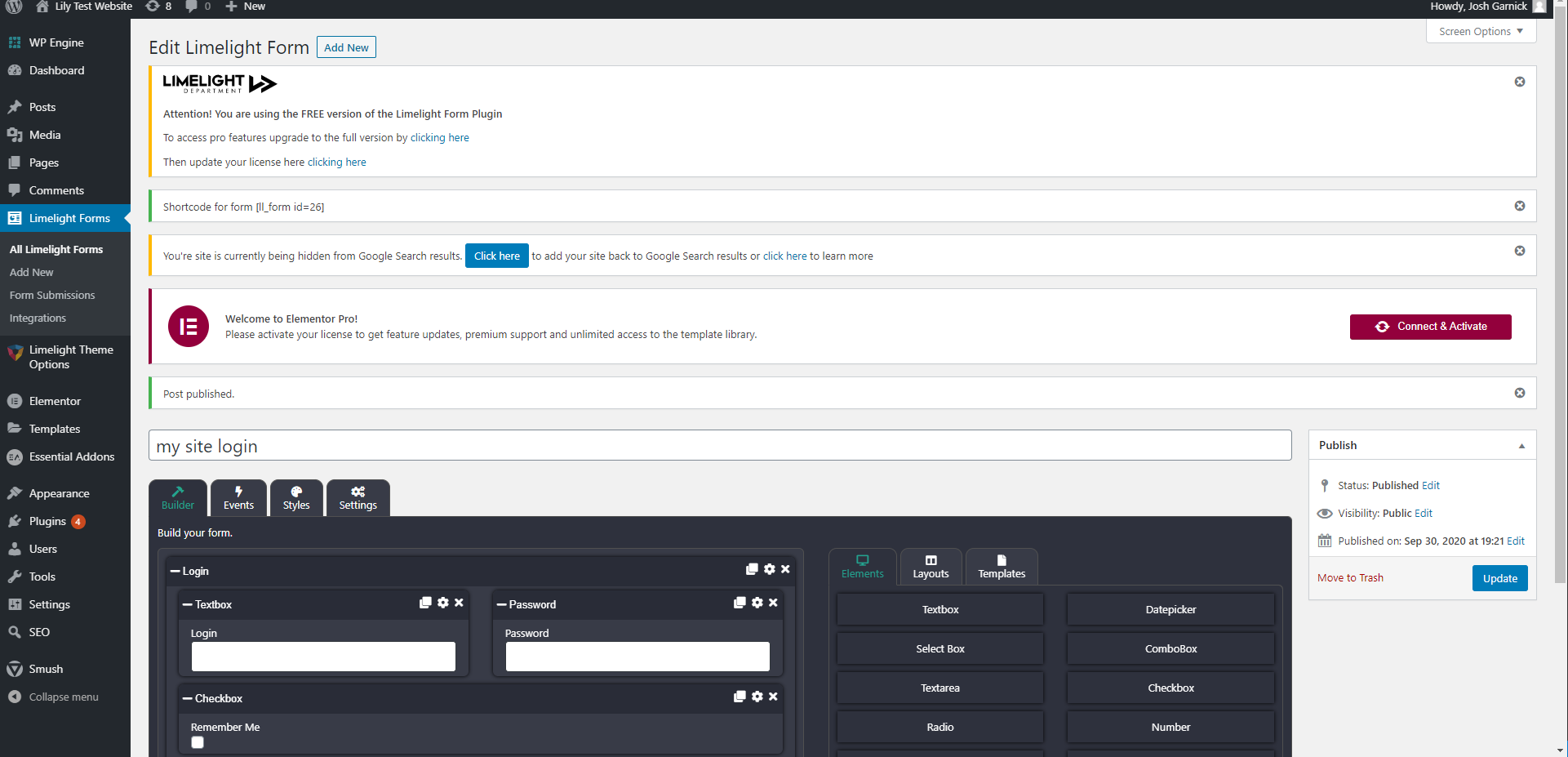 All that’s left: make sure to save your changes. Your checkout forms are done! From here it’s just as simple as copying and pasting the shortcode into an elementor page block like we talked about before in the Limelight Forms section. Don’t forget to customize and style your checkout form too!